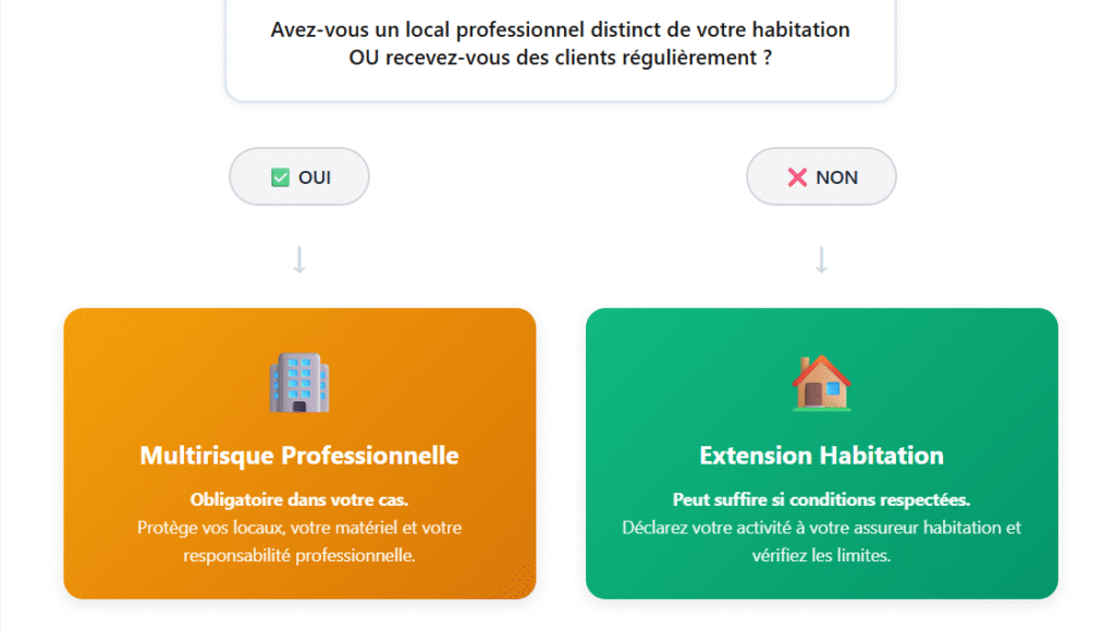 - Exercez-vous votre activité depuis un local distinct de votre habitation ? → OUI = Multirisque obligatoire