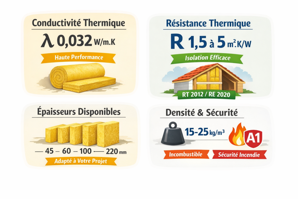 Caractéristiques techniques : lambda, R, formats, épaisseurs
